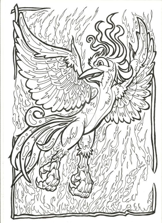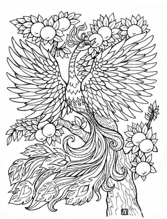 Kleurplaten en maskers van het thema Vuurvogel -